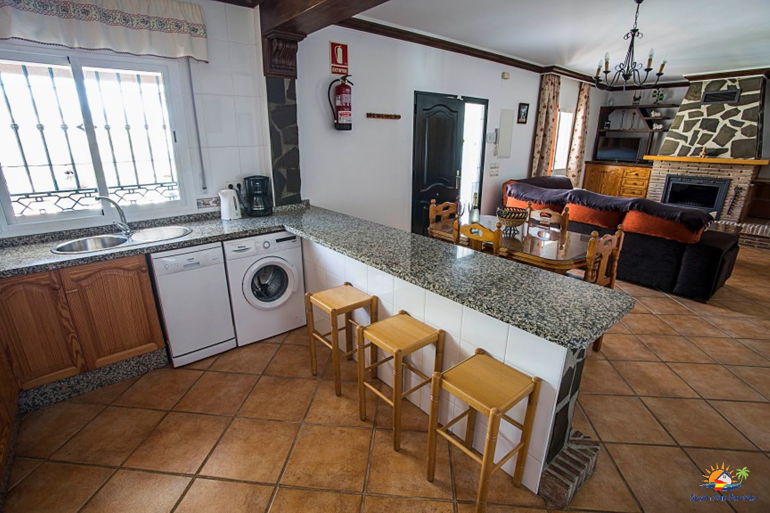 Interior: Aire acondicionado en todo (también calefacción en los meses más fríos), Wi-Fi, chimenea, secador de pelo, plancha, TV con canales vía satélite. Se puede alquilar una cuna y una trona a nivel local por un pequeño cargo diario.