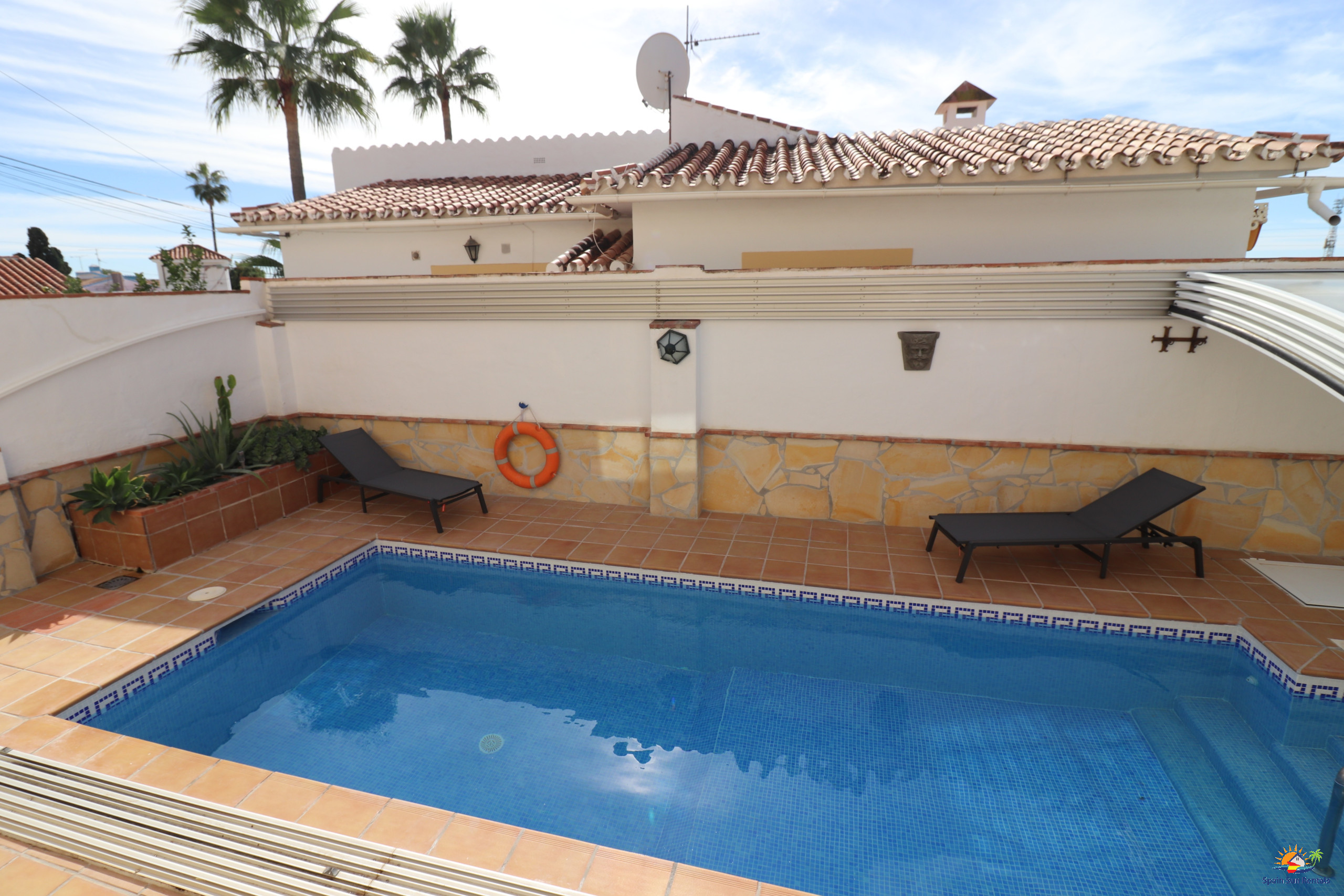 Sun Loungers and Seating Area for ultimate comfort by the pool.